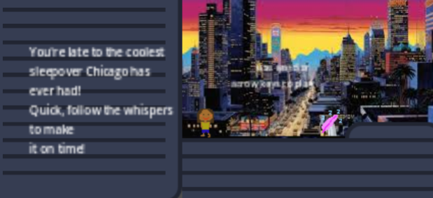 You're late to the coolest sleepover Chicago has ever had! Quick, follow the whispers to make it on time!